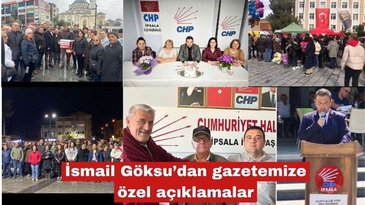 Yerel seçim sürecinde ilçe genelinde kapı kapı dolaştıklarını belirten Göksu, “Partimizin politikalarını ve projelerini anlatarak seçmenimizin büyük kısmına ulaştık. İpsala merkezde çok az farkla istediğimiz sonucu alamadık. Ancak il genel meclis üye sayımızı 1’den 2’ye çıkardık. Belediye Meclisi’nde ise 4 üyeyle temsil hakkı kazandık. Yenikarpuzlu’da 47 yıl aradan sonra CHP iktidarı ile halkımızı buluşturduk” dedi.