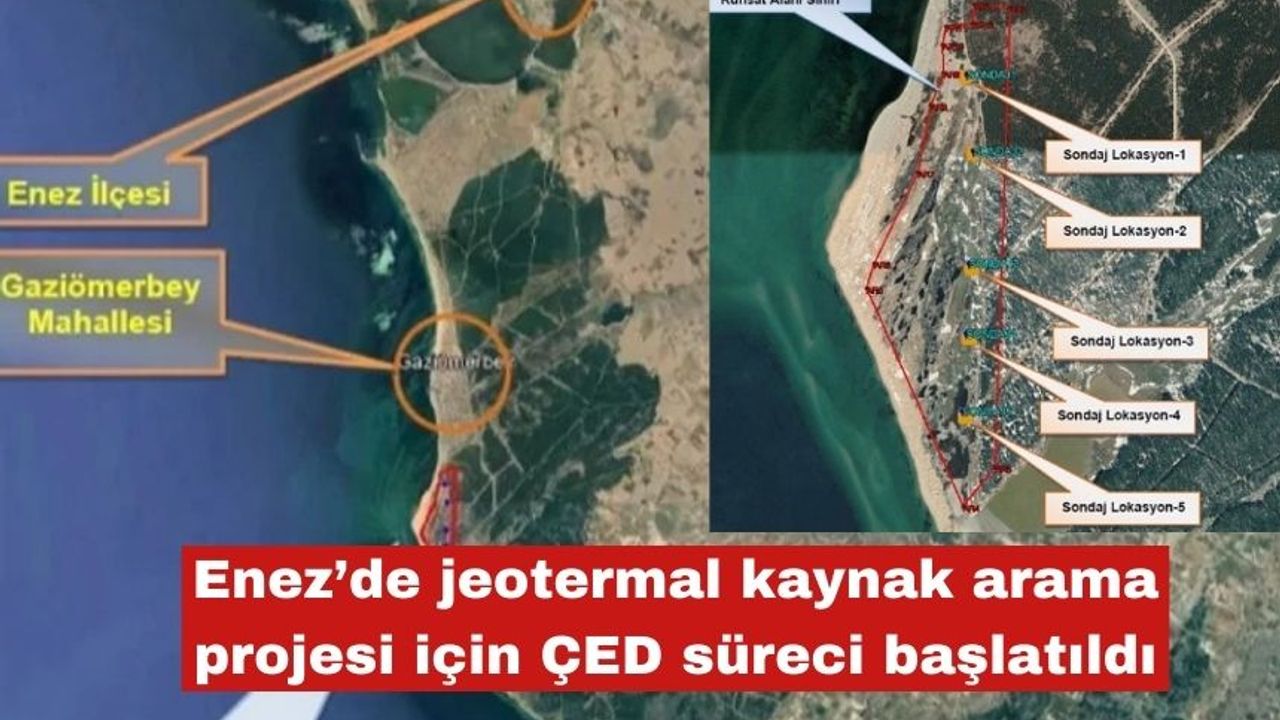 Enez ilçesine bağlı Gaziömerbey Mahallesi’nde jeotermal kaynak arama amaçlı sondaj çalışmaları için Çevresel Etki Değerlendirme (ÇED) süreci resmi olarak başlatıldı. Proje, ilk aşamada 5 adet sondaj ile bölgenin jeotermal potansiyelini ortaya koymayı hedefliyor.