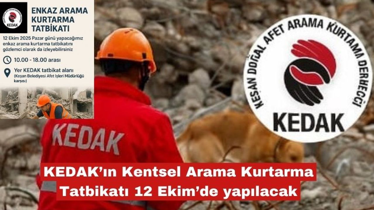 Keşan Doğal Afet Arama Kurtarma Derneği (KEDAK), 12 Ekim 2025 Pazar günü kentsel arama kurtarma tatbikatı düzenleyecek. Gerçek afet senaryolarına uygun şekilde planlanan tatbikat, İnsarag yönetmeliğine göre gerçekleştirilecek.