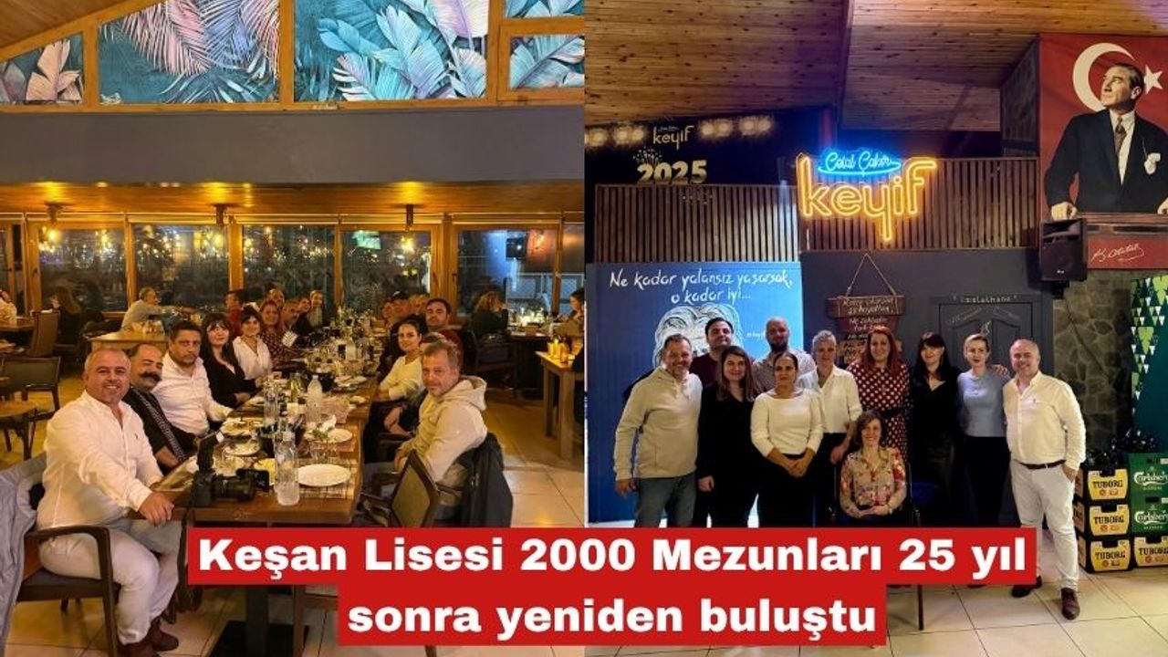 Keşan Lisesi 2000 mezunları, Uğur Aksoy’un organize ettiği özel gecede Keyif Restaurant’ta bir araya geldi. Mezunlar, 25 yıl sonra yeniden buluşmanın mutluluğunu yaşarken, dostlukların ilk günkü sıcaklığını koruduklarını dile getirdiler.
