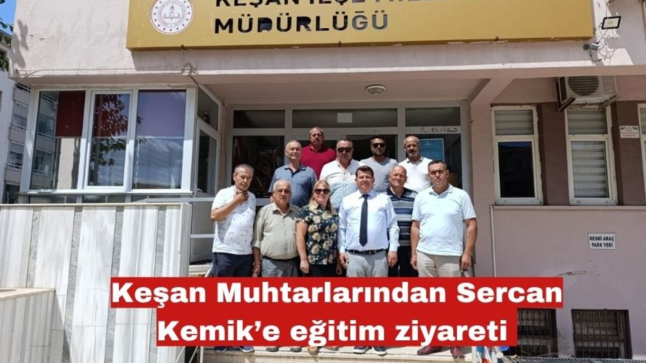 Daha önce Keşan İlçe Milli Eğitim Müdürlüğü görevine atanan Sercan Kemik’i hayırlı olsun ziyaretinde bulunan mahalle muhtarları, geçtiğimiz perşembe günü ikinci bir ziyaret daha gerçekleştirdi. Ziyarette, mahallelerdeki okulların mevcut durumu detaylı bir şekilde değerlendirildi.