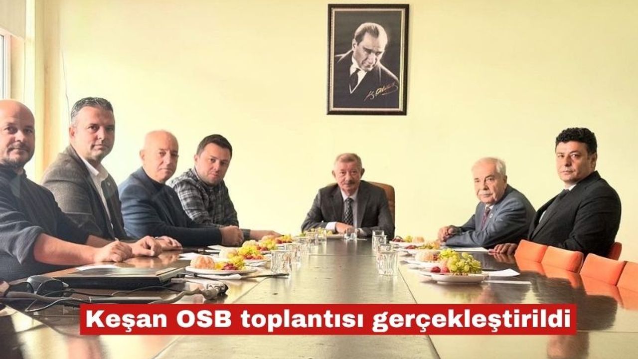 Keşan Organize Sanayi Bölgesi (OSB) toplantısı, Keşan Kaymakamı Aziz Mercan başkanlığında; Keşan Belediye Başkanı Op. Dr. Mehmet Özcan, Keşan Ticaret ve Sanayi Odası Yönetim Kurulu Başkanı İsmail Şapçı, Keşan Ticaret Borsası Yönetim Kurulu Başkanı Necmi Kaymaz, Keşan TSO Genel Sekreteri Erdem Başak, OSB Müdürü Rıza Taşlıtepe ve OSB Danışmanı Çevre Mühendisi Murat Bağcıoğlu’nun katılımlarıyla gerçekleştirildi.