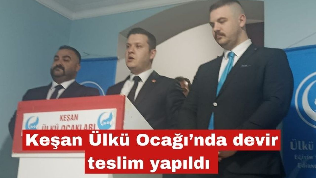 Saat 19.45’te Keşan Ülkü Ocakları’nde gerçekleşen devir teslim törenine, Edirne Ülkü Ocakları İl Başkanı Cihan Çetin, MHP Keşan Belediye Meclis Üyesi Serdar Duman, MHP Keşan İlçe Yönetim Kurulu üyesi Ahmet Özkaya, partililer, Keşan Ülkü Ocakları Başkanı Yiğit Yamalı ile bu göreve yeni atanacak Evren Bulut katıldı.