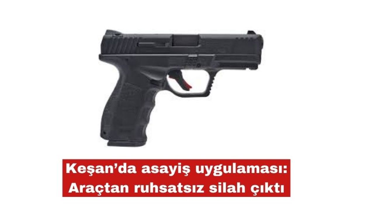 Keşan İlçe Emniyet Müdürlüğü ekiplerinin Yenimescit Mahallesi’nde gerçekleştirdiği rutin kontroller sırasında durdurulan şüpheli bir araçta tabanca ele geçirildi. Olayla ilgili bir suça sürüklenen çocuk (S.S.Ç.) hakkında işlem başlatıldı.