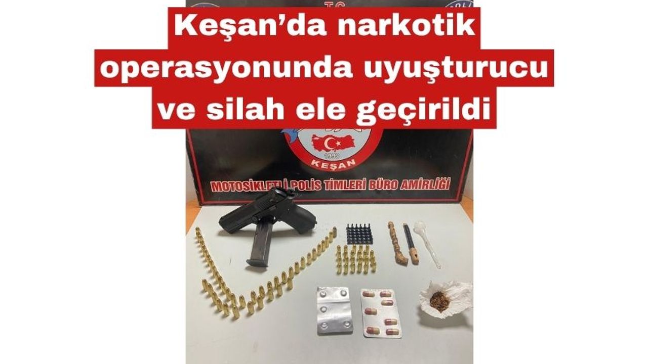 Keşan’da narkotik operasyonunda uyuşturucu ve silah ele geçirildi