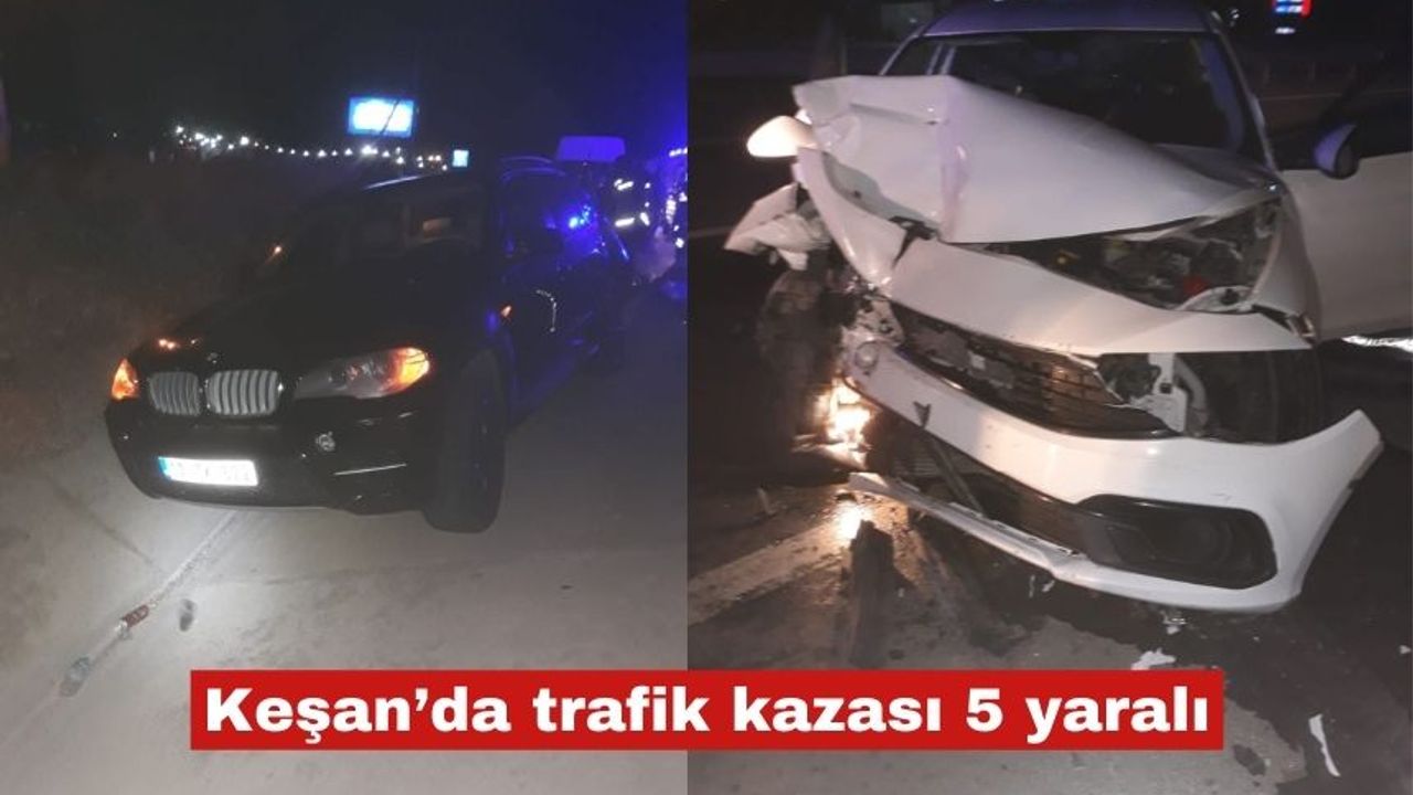 Keşan’da otomobilin önünde seyreden otomobile arkadan çarpması sonucu 5 kişi yaralandı. Kaza, geçtiğimiz Cuma günü akşamı, saat 22.00 sıralarında Keşan-Gelibolu kara yolu Bahçeköy sapağında meydana geldi.