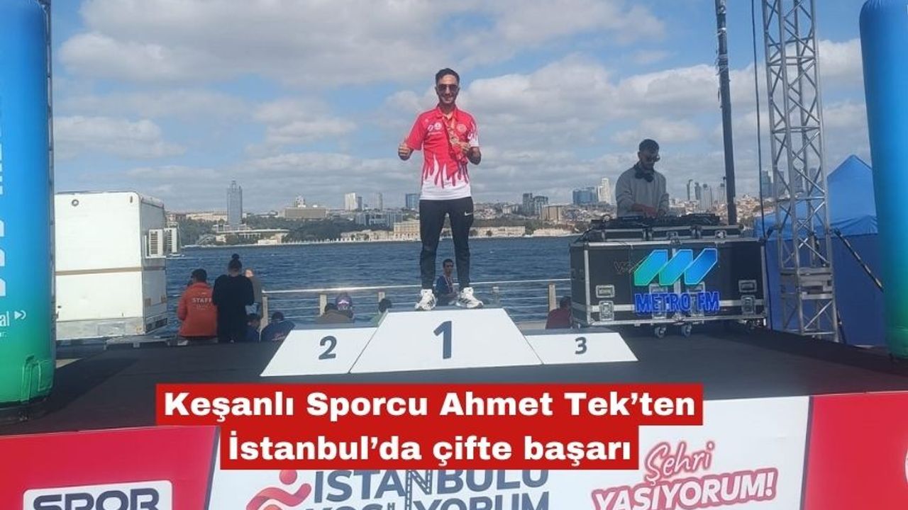 Keşanlı atlet Ahmet Tek, İstanbul’da düzenlenen “İstanbul’u Koşuyorum” yarışında 2500 sporcunun katıldığı 5 km parkurunda genel klasmanda 2’nci, yaş grubunda ise şampiyon olarak önemli bir başarıya imza attı.