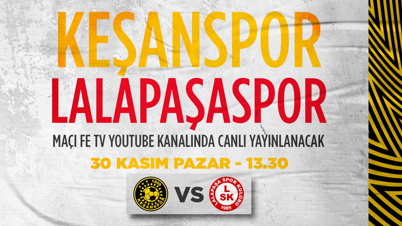 Saat 14.00’te başlayacak Keşanspor-Lalapaşaspor karşılaşması saat 13.30’dan itibaren Fe TV’den canlı yayınlanacak.