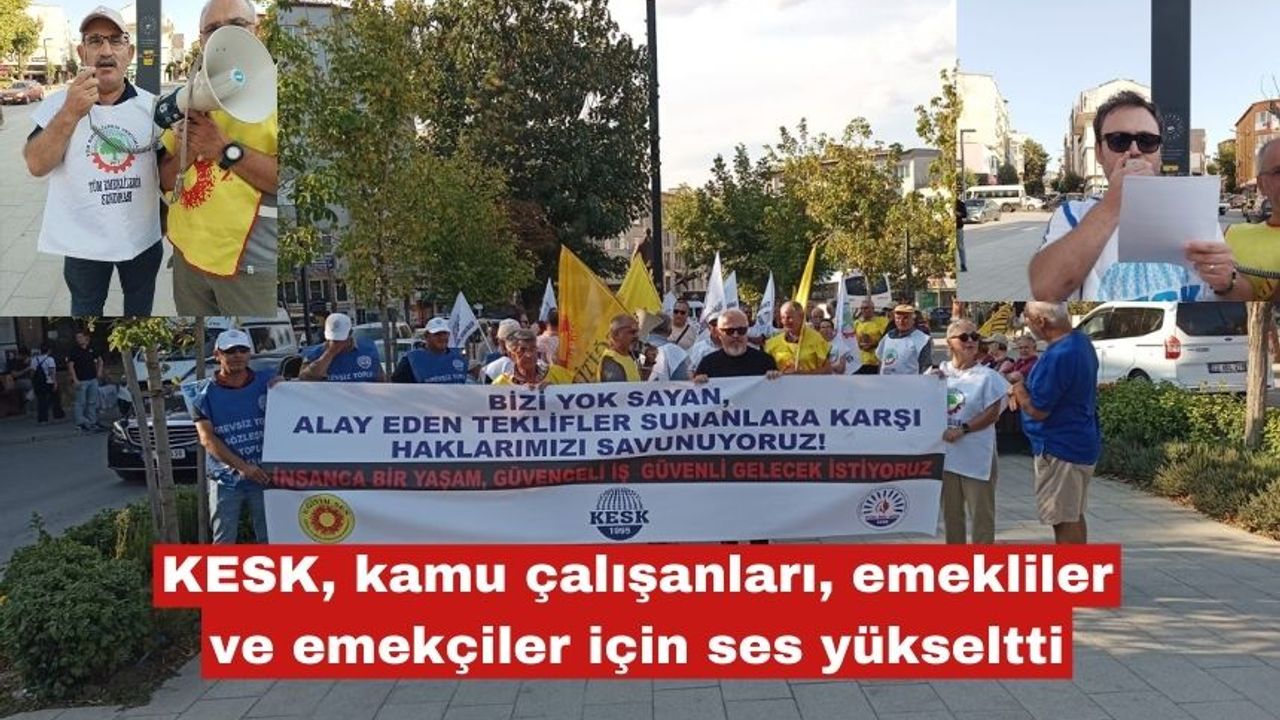KESK tarafından Keşan Cumhuriyet Meydanı’nda kamu emekçilerinin,emeklilerin, demokratik kitle örgütlerinin katılımı ile bir basın açıklaması yapıldı.
