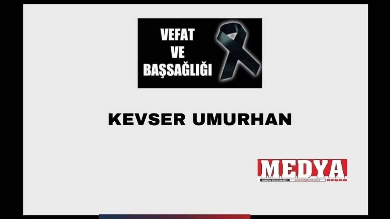 Merhum Fatma Gümüş’ün kızı, Sevinç, Sevgi, Zehra, Zeki ve balıkçı dalyan Yalçın Umurhan’ın eşi, Aytül, Buket, Gülhan ve Betül Umurhan’ın anneleri olan KEVSER UMURHAN vefat etti.