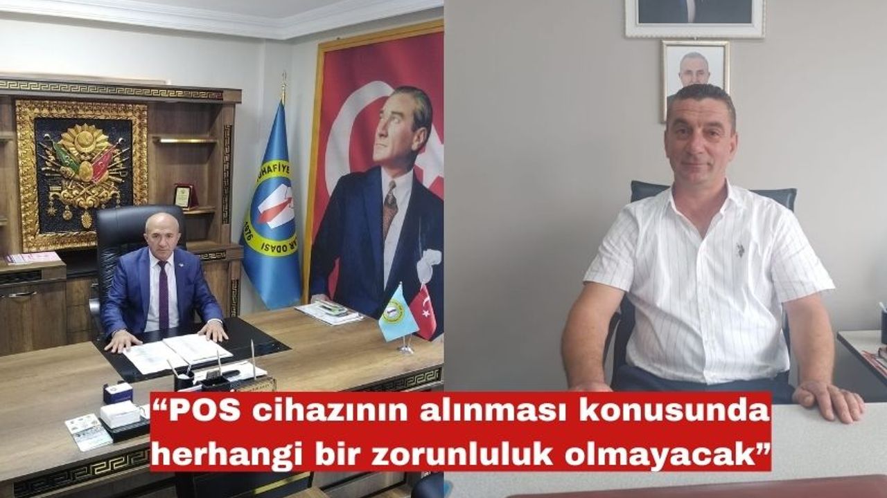Kocaman ve Karaağaç, oda üyelerini yakından ilgilendiren POS cihazı talepleriyle ilgili olarak son günlerde sosyal medyada paylaşılan “POS cihazı kullanımı zorunlu olacak” çeklindeki paylaşımların ve söylentilerin asılsız olduğunun altını çizdi. Konuyla ilgili olarak ortak açıklama yapan Kocaman ve Karaağaç, “Son günlerde, 15 Ağustos'tan itibaren pazarlarda ‘POS cihazı zorunlu olacak’ haberleri, esnaflarımızı endişelendirmekle kalmayıp, pazarda alışveriş yapan vatandaşların da kafasını karıştırdı. Bu haberlerin ve söylentilerin gerçeği yansıtmadığını hem esnaflarımıza hem de vatandaşlarımıza bildiririz. Kaldı ki esnaflarımız POS cihazı zorunluluğuna karşı.” dedi.
