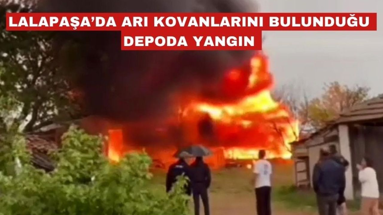 Edirne’nin Lalapaşa ilçesinde arı kovanlarının bulunduğu depo alev alev yandı. Yangında kovanlar tamamen yandı, depo kullanılamaz hale geldi.