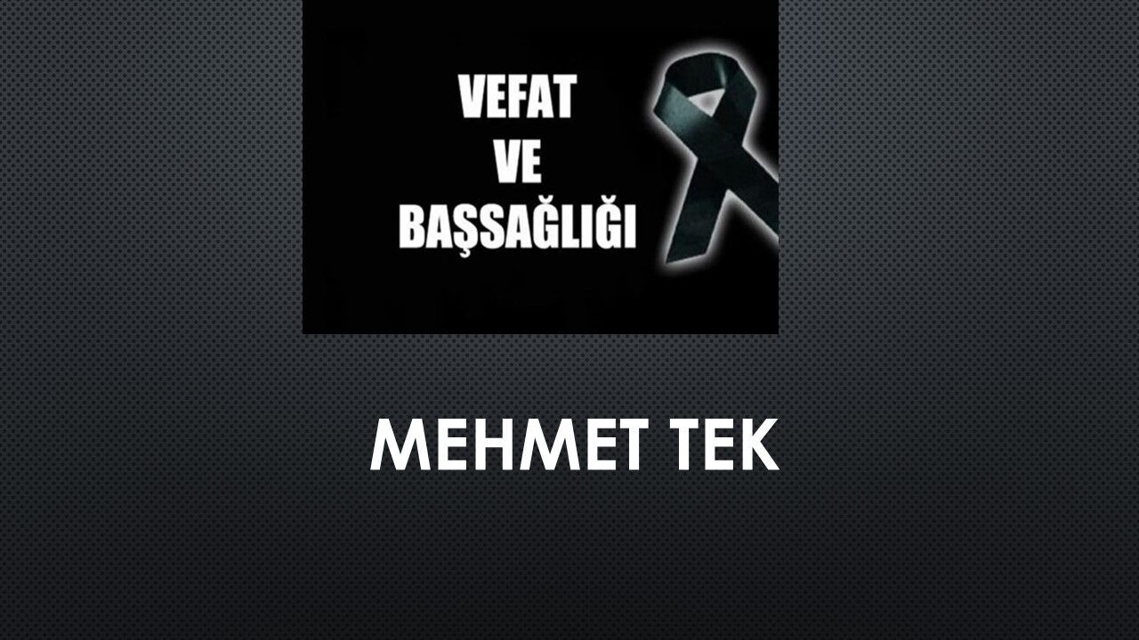 Mustafa Kemal Paşa Mahallesi halkından, merhum Ahmet Tek ve merhume Gülizar Tek’in oğulları, Hasan, Gülsüm ve Hüseyin Tek’in kardeşleri, Ahmet, Gamze, Hasan, Polat, Zümbül ve Gülsüm Nur’un babaları olan MEHMET TEK vefat etti.