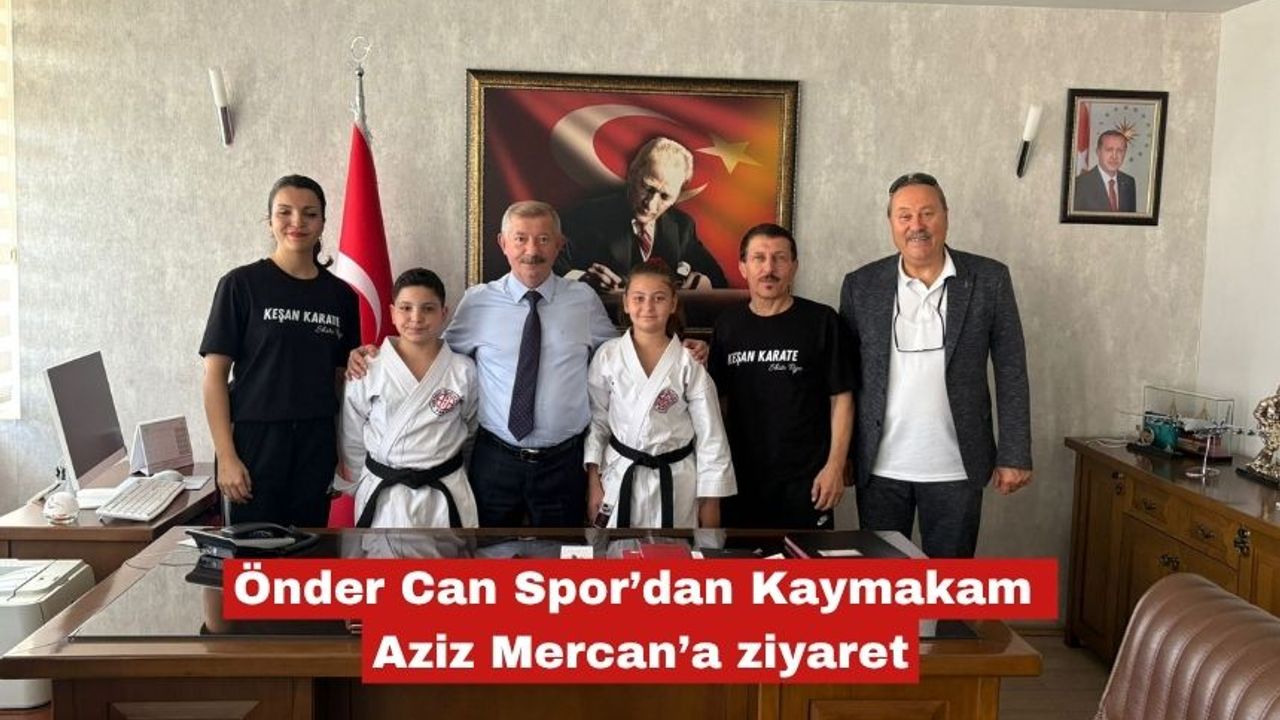 Keşan Kaymakamı Aziz Mercan, Önder Can Spor Kulübü yetkilileri Ender Arda, Hamdi Çevik ve Meltem Şahin ile karate öğrencilerini makamında ağırladı.