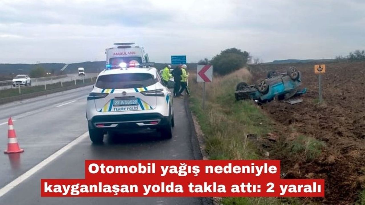 Keşan’da yağmur yağışı nedeniyle kayganlaşan yolda sürücüsünün direksiyon hakimiyetini kaybettiği otomobilin takla atması sonucu 1’i çocuk 2 kişi yaralandı. Kaza, akşam saatlerinde Keşan-Uzunköprü kara yolunda meydana geldi. Uzunköprü’den, Keşan yönüne giden H.K. (42) yönetimindeki 34 EJT 440 plakalı otomobil, yağmur yağışı nedeniyle kayganlaşan yolda sürücüsünün direksiyon hakimiyetini kaybetmesi sonucu yoldan çıkarak takla attı. Kazada, otomobilde yolcu olarak bulunan F.K. (39) ve Y.K. (9) yaralandı. İhbar üzerine olay yerine jandarma, polis ve sağlık ekipleri sevk edildi. Yaralılar, ambulansla kaldırıldıkları Keşan Devlet Hastanesi’nde tedaviye alındı. Yaralıların sağlık durumlarının iyi olduğu öğrenildi. Kazayla ilgili inceleme sürüyor.