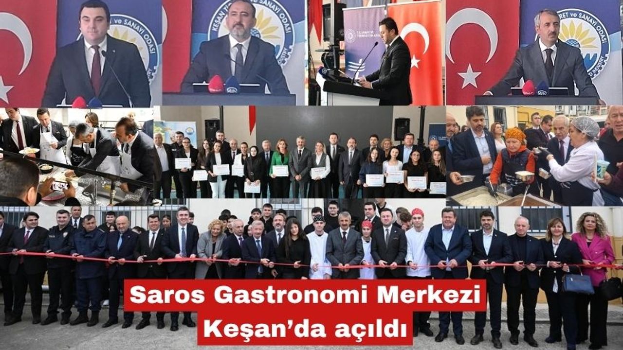 Trakya Kalkınma Ajansı tarafından finanse edilen Saros Gastronomi Merkezi, Keşan Ticaret ve Sanayi Odası ile Keşan İlçe Milli Eğitim Müdürlüğü iş birliğinde hayata geçirildi. Projenin açılışı, saat 13.30’da Edirne Valisi Sayın Yunus Sezer, Keşan Kaymakamı Aziz Mercan, Keşan Belediye Başkanı Mehmet Özcan, Keşan Ticaret ve Sanayi Odası Başkanı İsmail Şapçı, Keşan İlçe Milli Eğitim Müdürü Sercan Kemik, Keşan Ticaret Borsası Başkanı Necmi Kaymaz, siyasi parti temsilcileri, daire amirleri, öğretmenler ve öğrencilerin katılımı ile gerçekleştirildi.