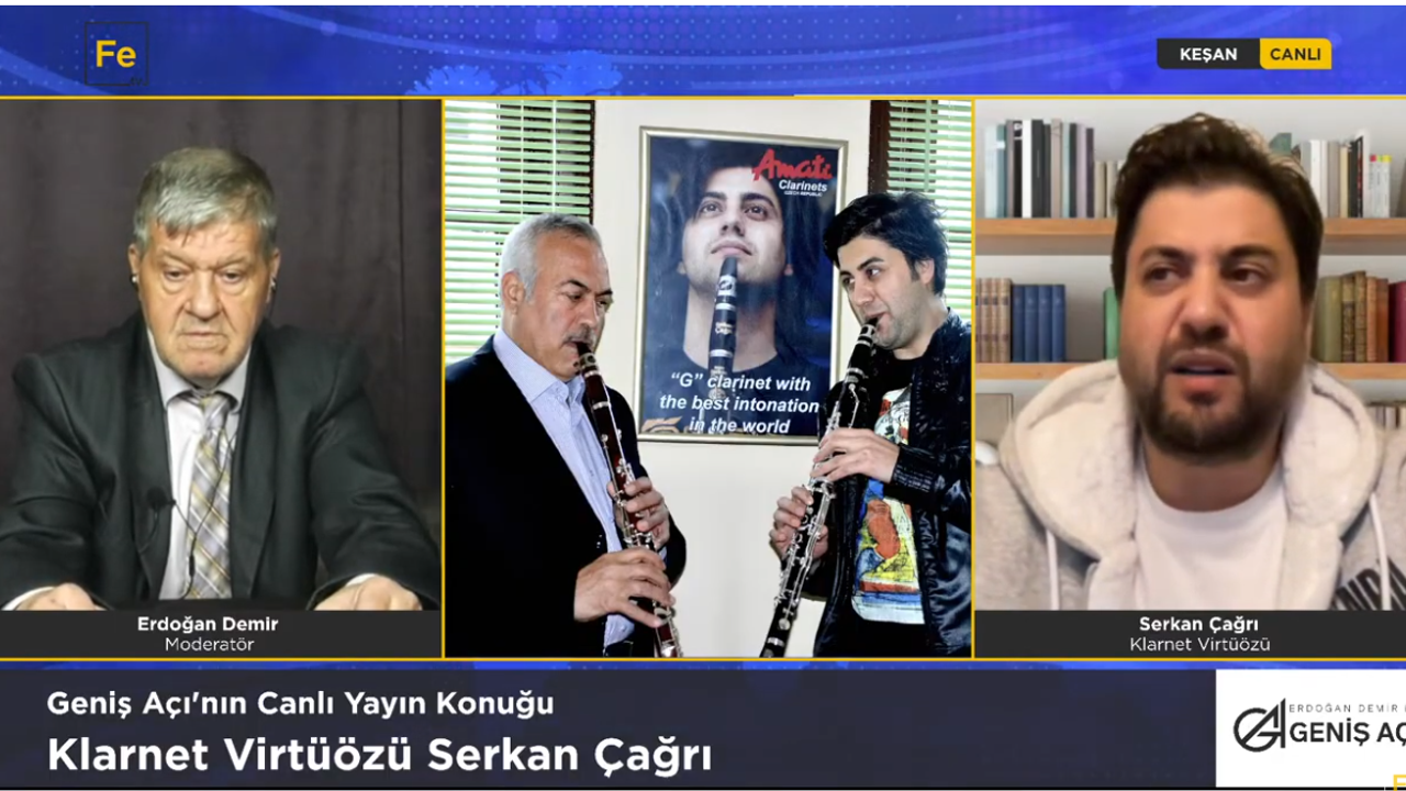 Ünlü klarnet virtüözü Keşanlı Serkan Çağrı Fe TV’de geçtiğimiz Pazartesi günü akşamı yayınlanan Gazaetemiz Yazı İşleri Müdürü Erdoğan Demir’in sunduğu Geniş Açı programında Keşan’da dikilen klarnetçi heykeli, müzik hayatı, ustalara duyduğu saygı, Hüsnü Şenlendirici ile olan rekabet algısı, rahmetli babasıyla ilgili anıları ve gelecek planları hakkında önemli açıklamalarda bulundu.