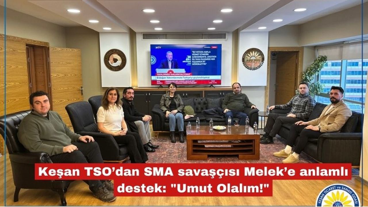 Keşan’ın evladı SMA Tip-2 savaşçısı Melek için yürütülen tedavi sürecine dikkat çekmek ve farkındalık oluşturmak amacıyla önemli bir ziyaret gerçekleştirildi. Keşan TSO Yönetim Kurulu Başkanı İsmail Şapçı ve Genel Sekreter Yardımcısı Kadir Can Tunç, kampanya gönüllülerini makamında ağırladı.
