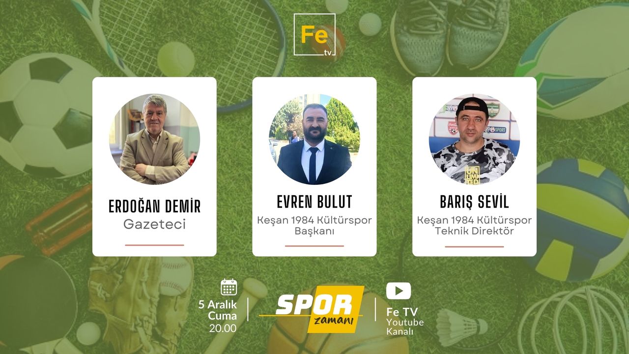 Erdoğan Demir’in sunduğu Spor Zamanı Fe TV’den saat 20.00’de canlı olarak yayınlanacak.