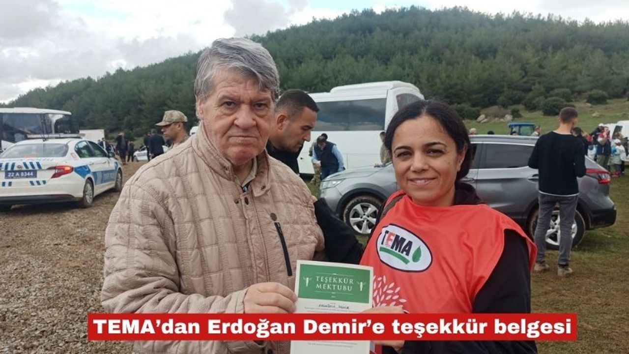 Edirne Valiliği tarafından 11 Kasım Milli Ağaçlandırma Günü kapsamında düzenlenen fidan dikim etkinliğine katılan Medya Keşan Gazetesi Yazı İşleri Müdürü, Keşan Postası Genel Yayın Yönetmeni ve Edirne İGFA Temsilcisi Erdoğan Demir’e TEMA tarafından teşekkür belgesi verildi.