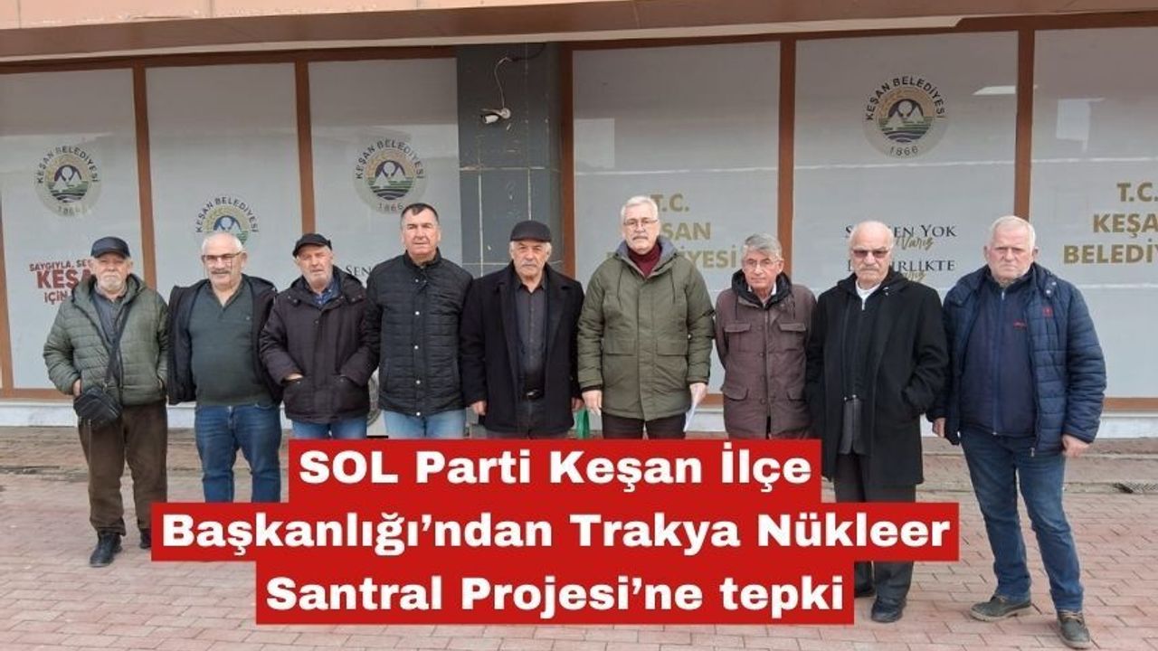 SOL Parti Keşan İlçe Başkanlığı Trakya Nükleer Santral Projesi ile ilgili olarak Keşan Belediyesi’ne yazılı bir dilekçe sunarak, bu konunun Mart ayı meclisi gündemine alınarak projenin iptal edilmesi yönünde meclis kararı alınmasını talep etti.