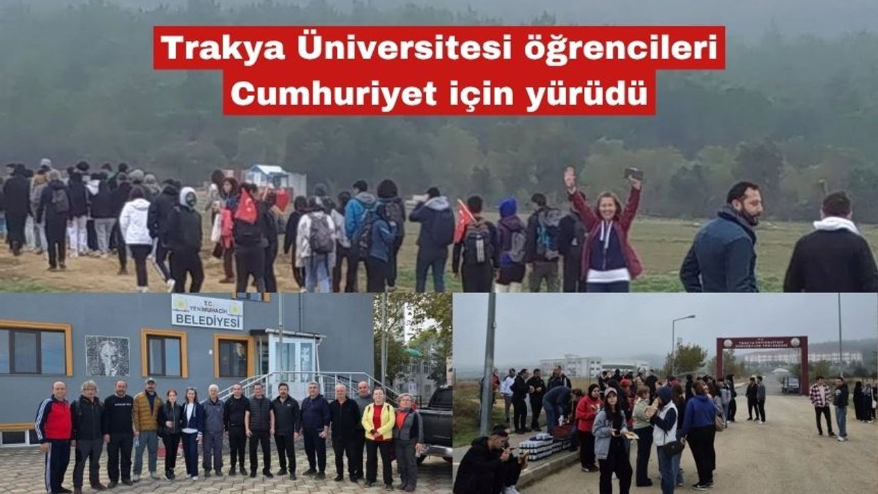 Cumhuriyetin 102. yılı onuruna gerçekleştirilen yürüyüş, gençler ve akademisyenlerin yoğun katılımıyla gerçekleşti. Etkinliği düzenleyen Trakya Üniversitesi yönetimi, “Cumhuriyet sevdasıyla bir araya gelen akademisyenlerimize ve gençlerimize teşekkür ediyoruz” mesajıyla birlik ve dayanışma vurgusu yaptı.