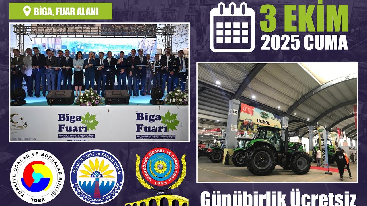 Keşan Ticaret ve Sanayi Odası (TSO), 3 Ekim 2025 Cuma günü Biga’da gerçekleştirilecek 18. Gıda, Tarım, Hayvancılık ve Teknolojileri Fuarı için üyelerine ücretsiz günübirlik katılım imkanı sunuyor.