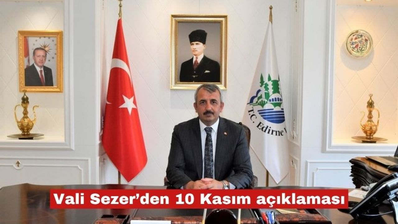 Edirne Valisi Yunus Sezer, Atatürk’ün 87. Ölüm yıldönümü nedeniyle yazılı bir açıklama yayınladı.
