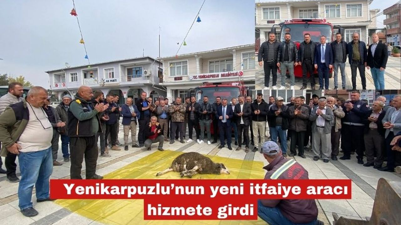 Yenikarpuzlu Belediyesi’nin yeni itfaiye aracı, düzenlenen törenle hizmete girdi. Türkiye Belediyeler Birliği tarafından hibe olarak verilen araç, beldeye kazandırıldı.